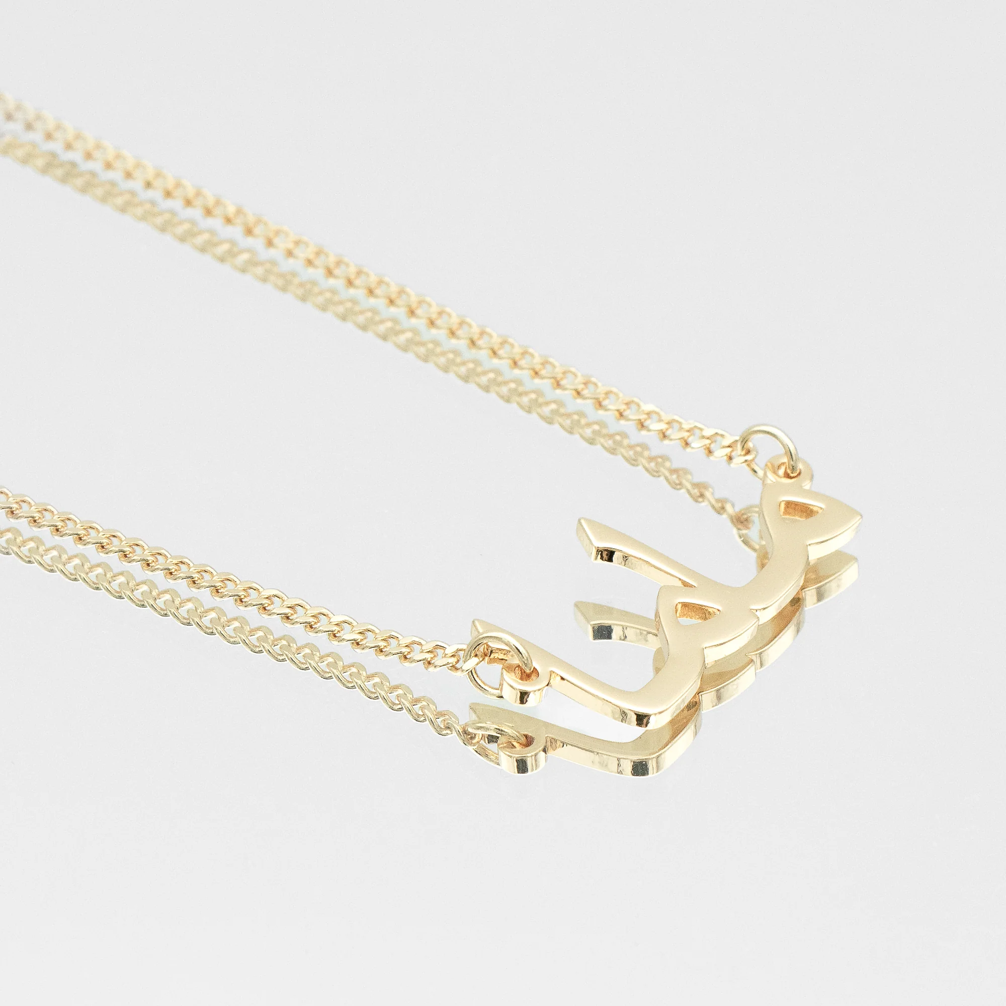 Add some Arabic charm to your style this season with our timeless Personalized Arabic Name Necklace. Inspired by the stunning script style of Arabic calligraphy, our Arabic Name Necklace is a beautifully designed, personalized necklace that can be customized to your liking. It is available in gold or silver stainless steel and can be suspended between the chain style of your choice. We will create your chosen name or word in an Arabic writing style and craft it into a solid metal pendant.